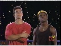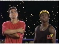 Jason & Zack look upward our right at Zordon, Jason folding his arms. |