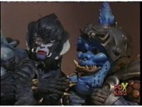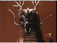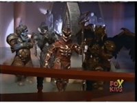 With his throne in front of the deactivated Z-Putties, Zedd quickly gets up, and as camera pushes in, he points arm forth for a moment, talking. |