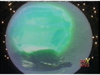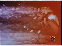 Close shot of floating satellite orb, which looks suspiciously like one of Zedd's growth grenades, as it shimmers and multiple small explosions erupt on its surface, until it begins to disintegrate off to our left. |