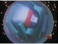 Downward angle on six Ranger teens in console area, with Alpha, all soon looking upward toward Zordon. |