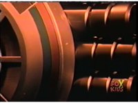 Close-up on side cannon-back rounded areas of Tor suddenly spinning its internal gyro until a set of five jet fingers pop out. |