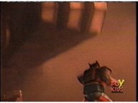 Close on Goldar, facing our slight right, talking while motioning sword and arm off-frame, giving head some good, excited shaking. |