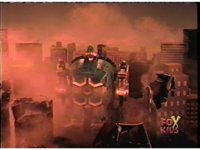 Thunder Megazord (shh!) spark bursts brightly in the city. |