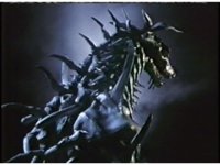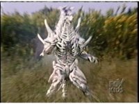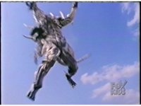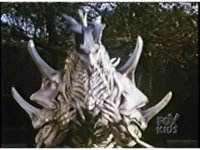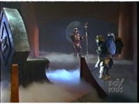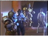 Slow zoom out as Zedd, standing on balcony, facing our slight right, jolts, then backs up, and twirls his staff around completely, charges it up, talks, then thrusts it forth, as Squatt & Baboo hang around with the Z-Putties in the far background. |