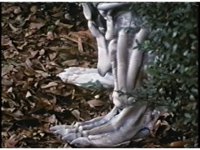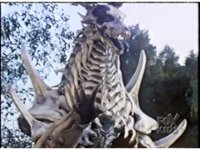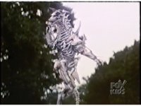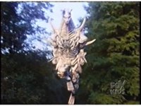 Pan up and push in, close on Skelereena, who lands, gestures hands in front of him, then shifts quickly to other side. |