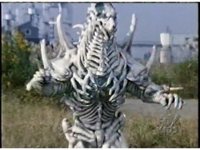 Sitting on throne, facing our slight left, Zedd sharply pulls hand away from forehead, then gestures fingers menacingly. Pan left over to Goldar, in front of Z-Putties, he turns to our right, motioning left arm forth and talking. Pan right, close on Zedd, as leans forth and motions hand just out of frame, finally sitting back and gesturing hand in front of face, as shot pans upper right to his Z-staff's Z top. |