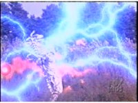 Lord Zedd's Z-shaped staff tip comes into frame, and fires white electricity from its shimmering red surface, lightning flashing about. |