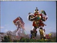 Close-up of Thunder Saber being sheathed by the Megazord. |
