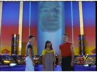 Zordon is superimposed up and over three Ranger teens (and later, Alpha, also). |