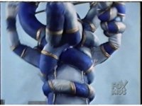 Close on Tube Monster as he raises his knotted arm and rushes forth to our slight left. |