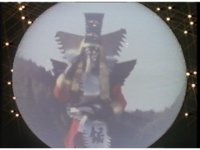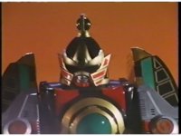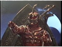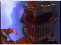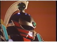 Close on Red Dragon's head as the helmet locks down over it. Pan down to green gem on chest plate. |