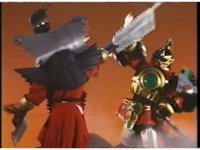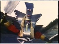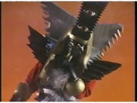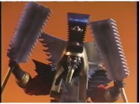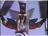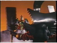 Jaws of Destruction turns and begins to slash sawblade at Thunder Megazord, which knocks it back with its own blade. |