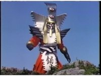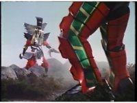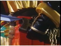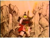 As RDTZWM glides past them in the background, track right, as Unicorn folds up into leg, Lion folds up into chest-plate & helmet, Griffin folds up into leg, and Firebird curls around into a... uhh, skirt. Blue lightning strikes about. |