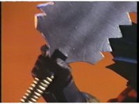 Jaws of Destruction slashes sawblade into the screen in dramatic slow motion. |