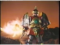 Close on Thunder Megazord as it turns around completely, to its left. |