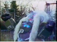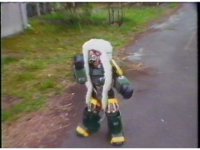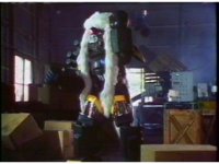 Far side angle as Bad Bookala points a lot, and poses with arms out, briefly on one leg, at the unimpressed Thunder Megazord, it finally poses battle ready near the end. |