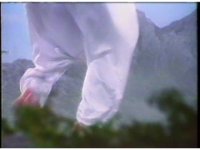 Close on Bad Bookala's Hammer-pants-wearing legs as he spins around and suddenly lifts up off the ground entirely. |
