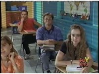 In Miss Appleby's class, the mass of extras get up and prepare to leave, while in the back, Skull rises, as does Bulk, who takes with him the entire desk top. |