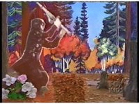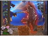 Pan up as Mondo the Magnificent Magician rushes at us, twirling his sword around over his head. |