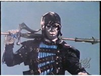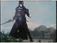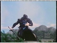 Close on Black Ranger, as he goes from posing to our left, to posing to our right, all three motions. |