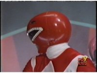 Close on Red Ranger in the smoky Thunder Megazord cockpit, as every gets very shaky, light flashing as he and his teammates struggle to maintain control. |