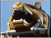 Extreme close-up of Yellow Bear Ninjazord's head, lifting it up as it roars. |