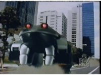 Push in on Red Ape Ninjazord, as it jogs through the city at us. |