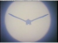 White Falcon Ninjazord flaps its wings and shrieks while flying to our left. |