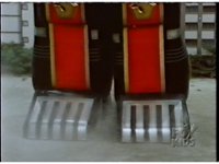 Close on Ninja Megazord's Frog legs, as they come together and jump up. |