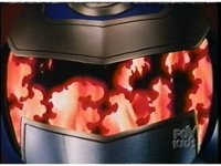 Extreme close-up of Ninjor's face, as an explosion reflects upon his visor, followed by animated flames raging upon the bottom. |