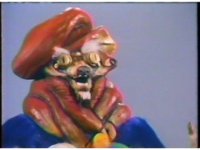 Close on Artistmole, as he points forth, then pats stomach with each hand. |