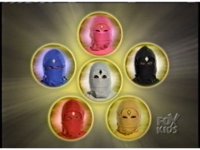 Six yellow circles with each of the Ranger Teens' heads transform into Ninjetti, then to Ninja Ranger modes. |
