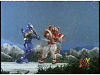 Zoom out from Centiback as he turns to face Ninjor & Ninja Megazord across the snowy battlefield, hopping up and down and excitedly jerking arms. |