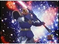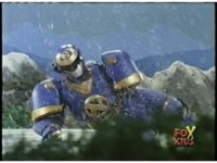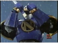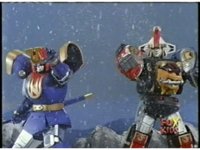 Close on Ninja Megazord, posing battle ready. Pan right to Ninjor, as he slashes sword, nod-talks, then rushes forth. |