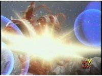 Close on Centiback as the pair of energy slashes rip into him, causing a flashing of yellow energy that erupts into a bright explosion. |