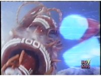 Ninjor POV, as the camera rushes quickly at and onto Centiback. |