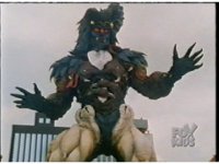 With Black Frog Ninjazord toys attached all over him, Hate Master is suddenly overcome by bluish electricity, which soon leads to rapid spark bursting. |