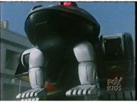 Black Frog Ninjazord slides to a stop just in front of the screen, eyes glowing red. |