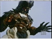 Close on Goldar's face, as he looks to our right, talking, raising a fist briefly, nodding, then lowering head. |