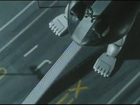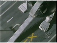 Close angle on Black Frog Ninjazord, slowly landing from a hop off to our semi-right. |