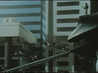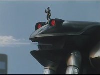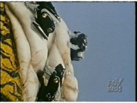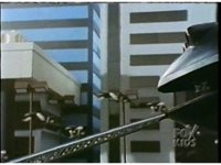 Real close on Black Frog Ninjazord, as it leaps up to our slight left in the city. |