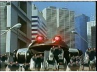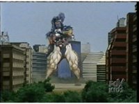 Push in on Red Ape Ninjazord, as it jogs through the city at us. |