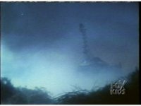 Continued from 2 shots ago, camera finishes tracking left in front of Titanus rolling through misty marsh. |
