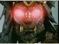 Extreme close-up on Hate Master's face, as his eyes glow a bright, flashing red. |