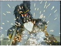 Continued, as the spark-smoke lingers, a drained Hate Master collapses forward, then explodes massively. |