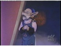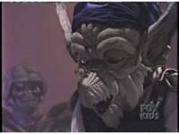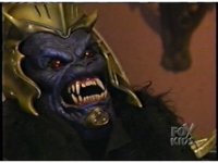 Close on Goldar, holding smoking bottle of green liquid, and begins to walk down, pan left to Squatt & Baboo. |