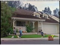 Exterior of Aisha's house, as three kids race down the sidewalk to our left. |