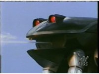 Extreme close-up of Ninja Megazord's left eye, Falconzord reflected in it. Quick zoom out and track around to behind Ninja Megazord, showing it facing the approaching Falcon. |