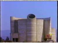 Slow pan down from the blue sky to the exterior of the Command Center at ground level. |