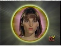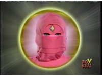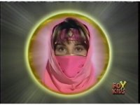 Kim's head, within a yellow circle, transforms into Ninjetti, then to Ninja Ranger mode. |